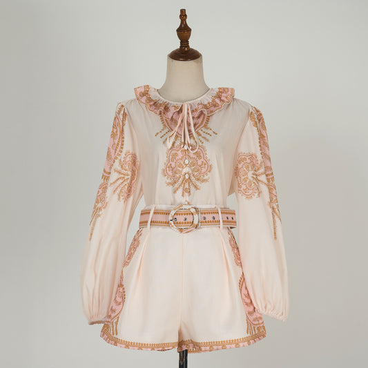 Loose Shirt With Ruffled Collar Elastic Waist Shorts Two Piece Set