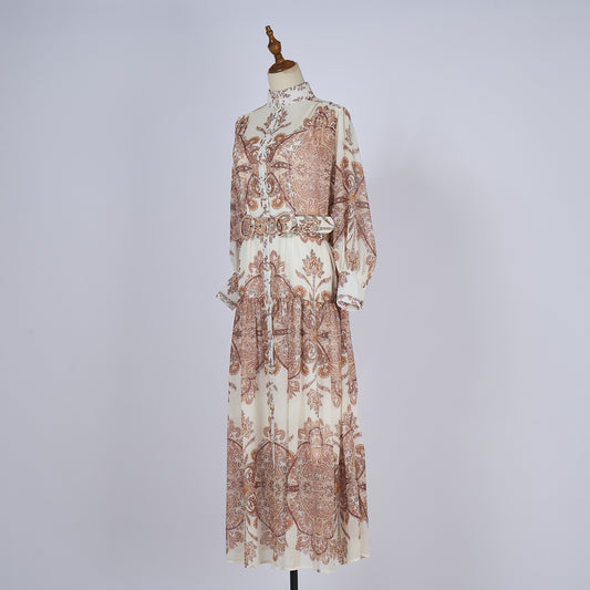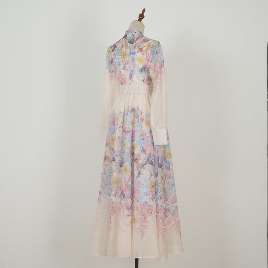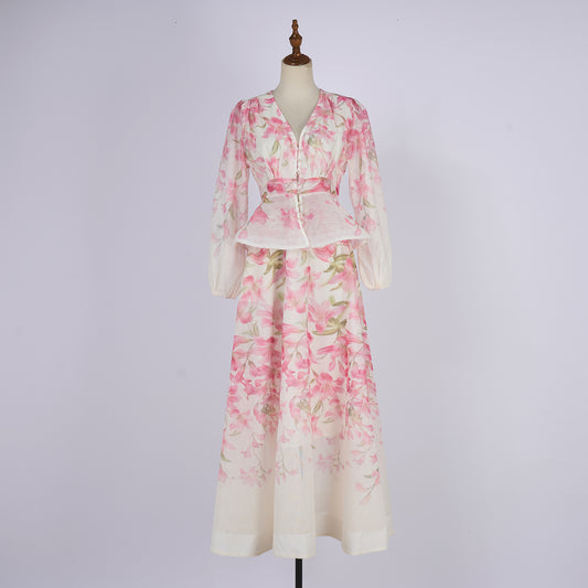 Long Sleeved Floral Printed Blouse & Skirt Set