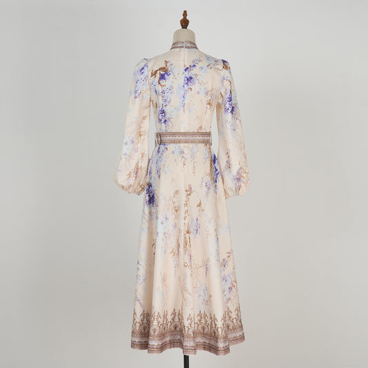 Printed Long Sleeve Elegant Dress