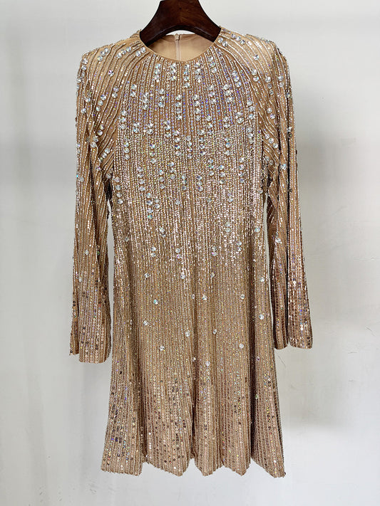 Beads & Diamond Long Sleeve Dress