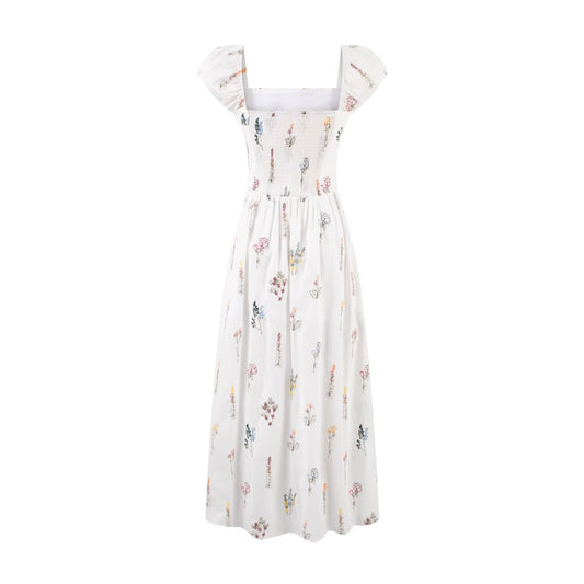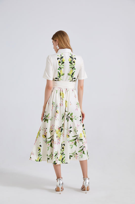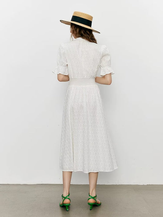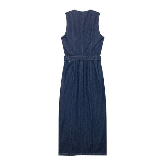 Button-Front Ruffle Sleeve Denim Midi Dress