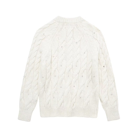 Rhinestone White Knitted Sweater