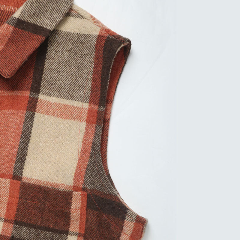 Sleeveless Collared Mid Length Plaid Vest