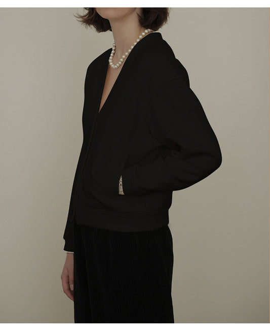 French V neck Cotton Cardigan