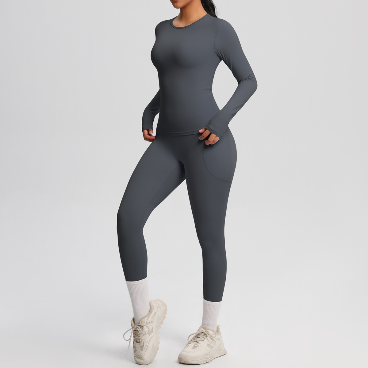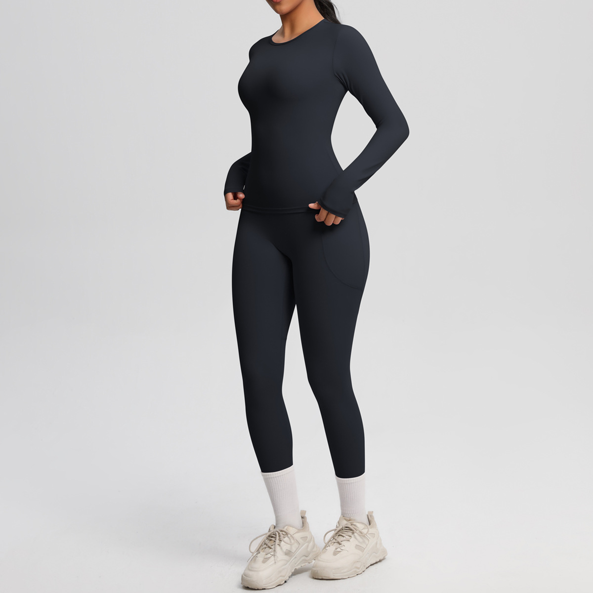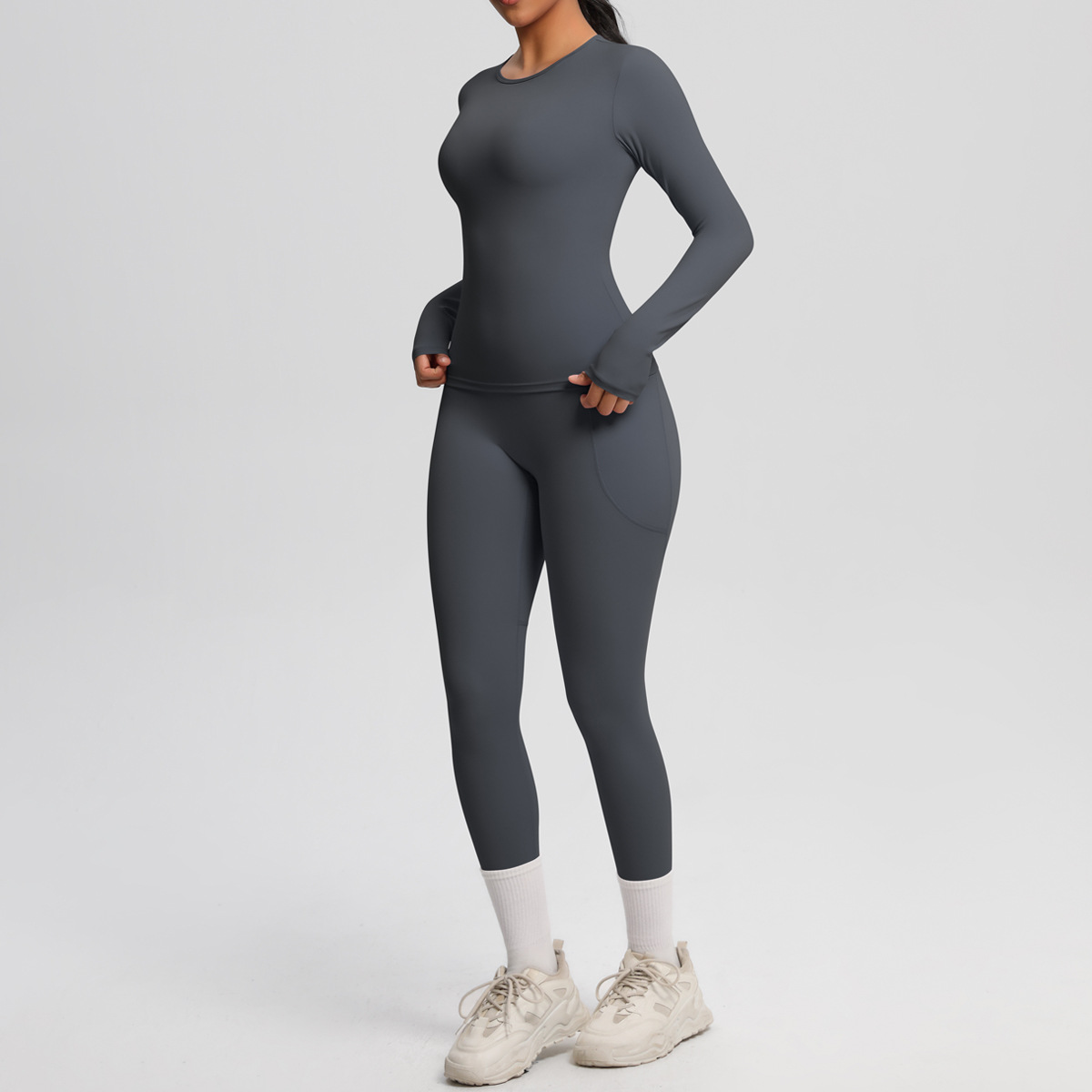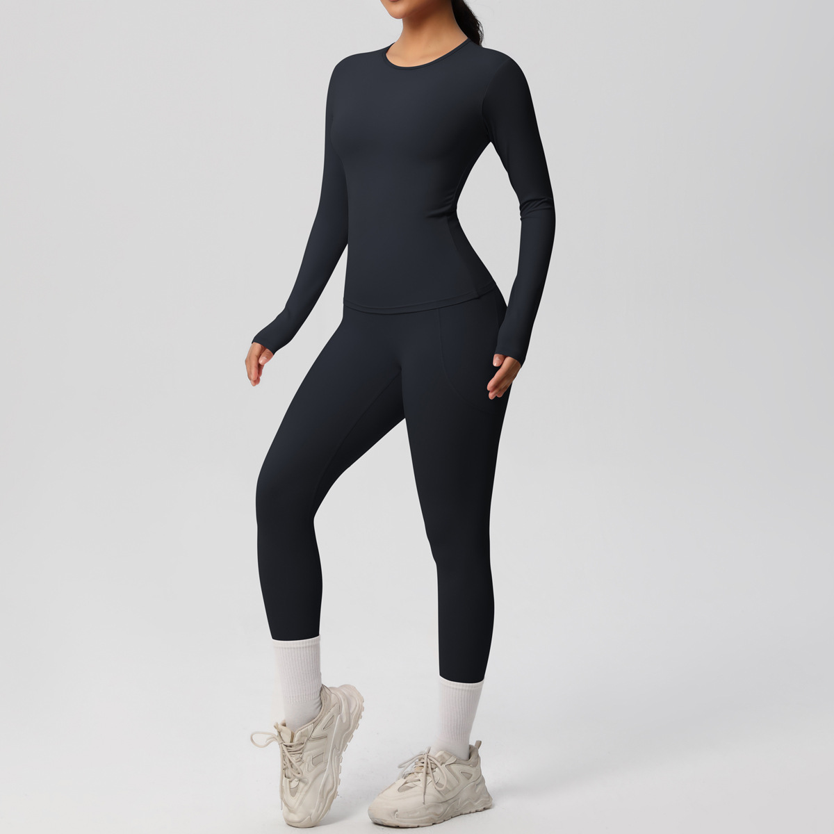 Long Sleeve Pocket Yoga Clothes Set