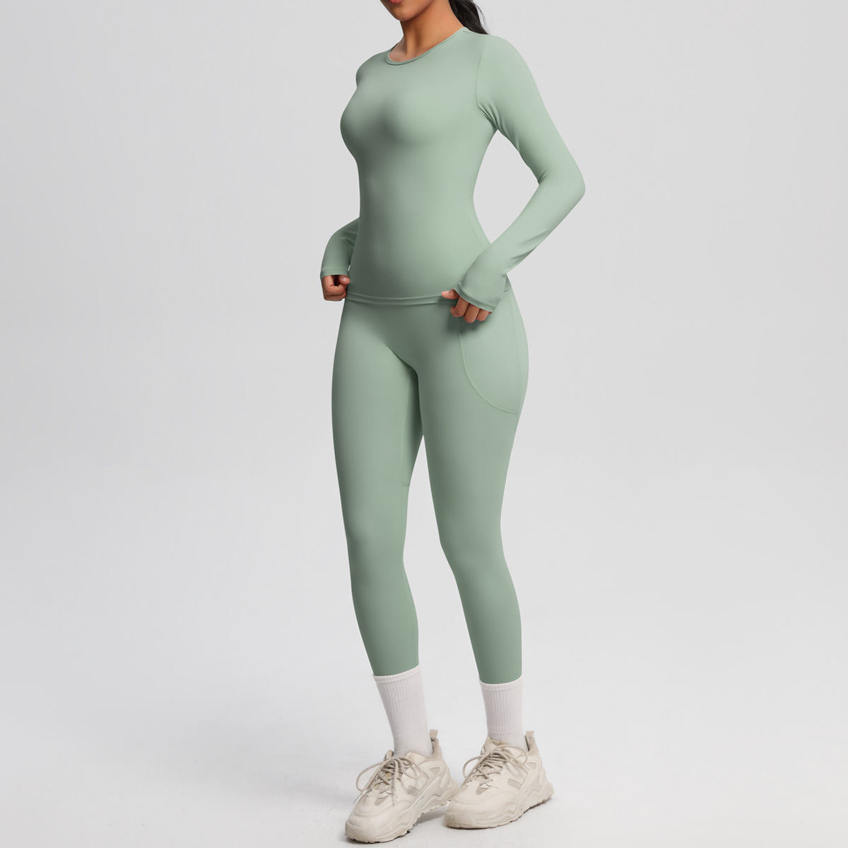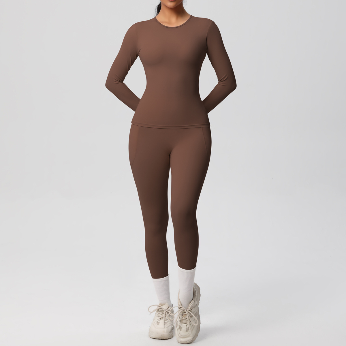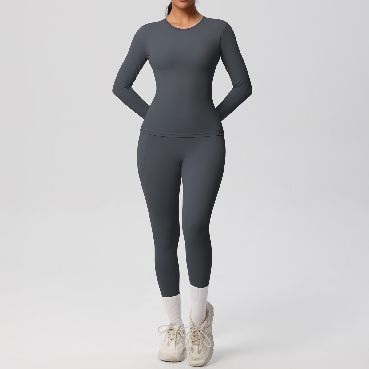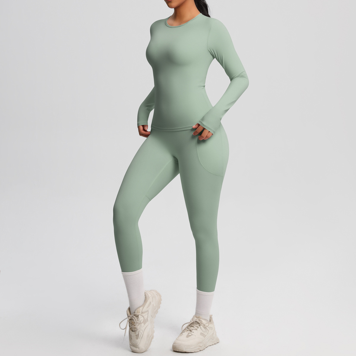 Long Sleeve Pocket Yoga Clothes Set