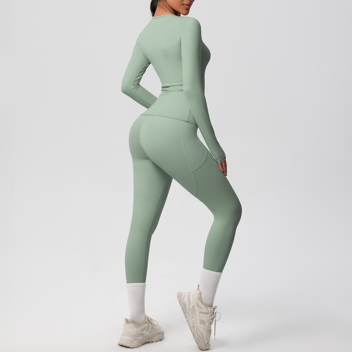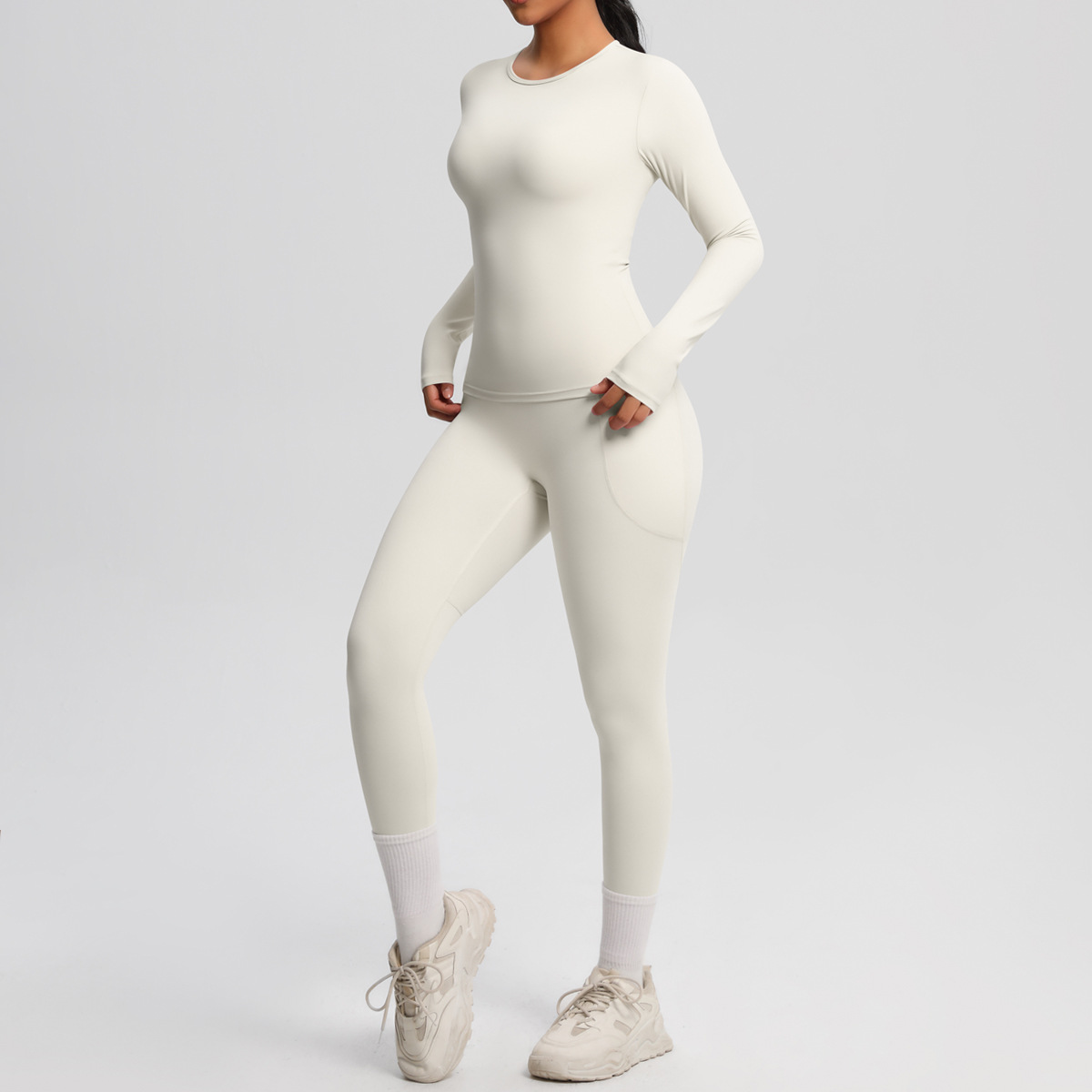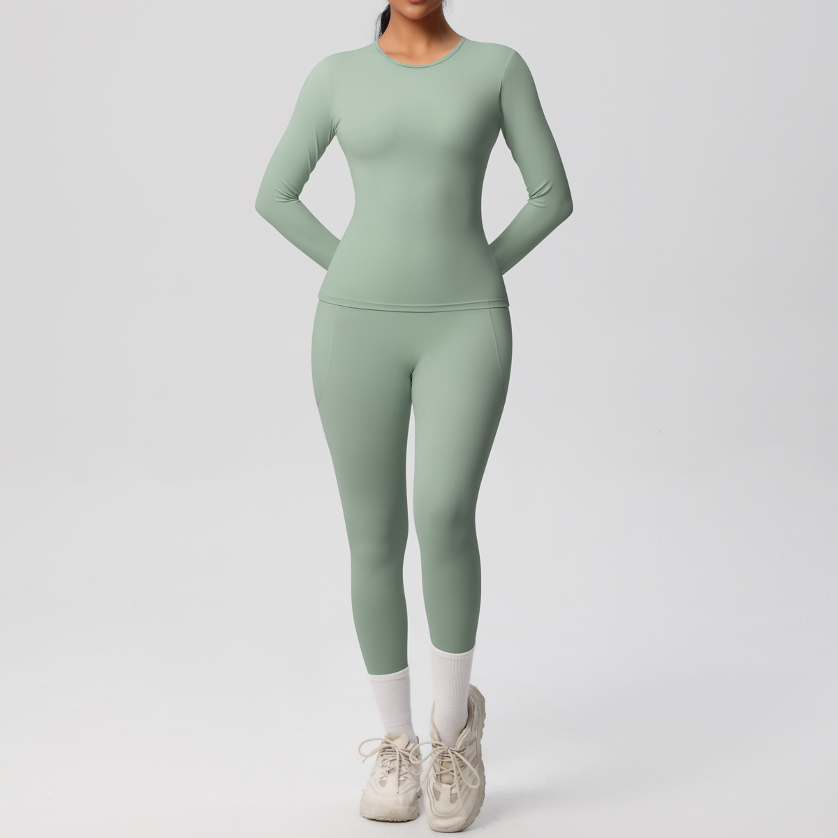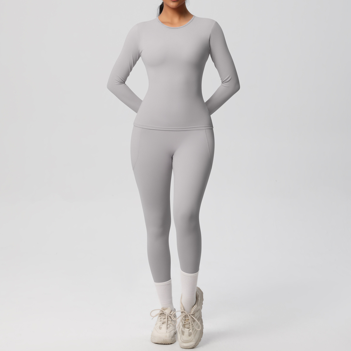 Long Sleeve Pocket Yoga Clothes Set